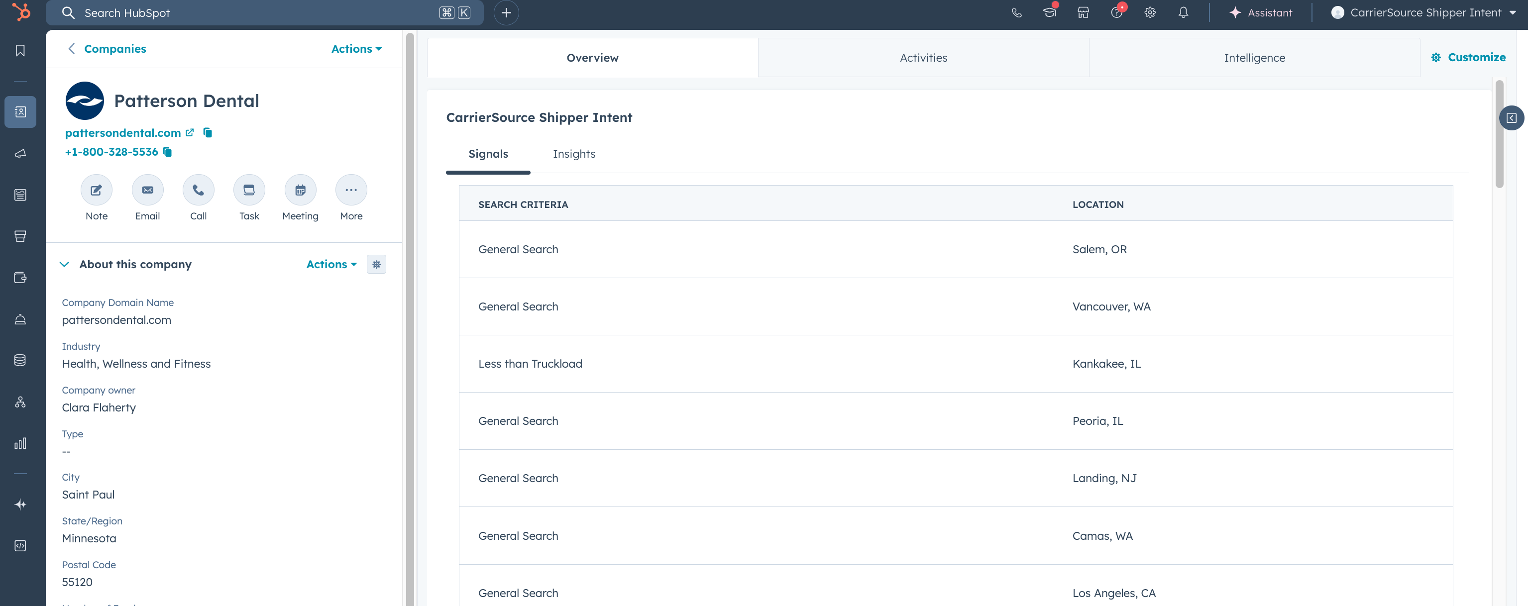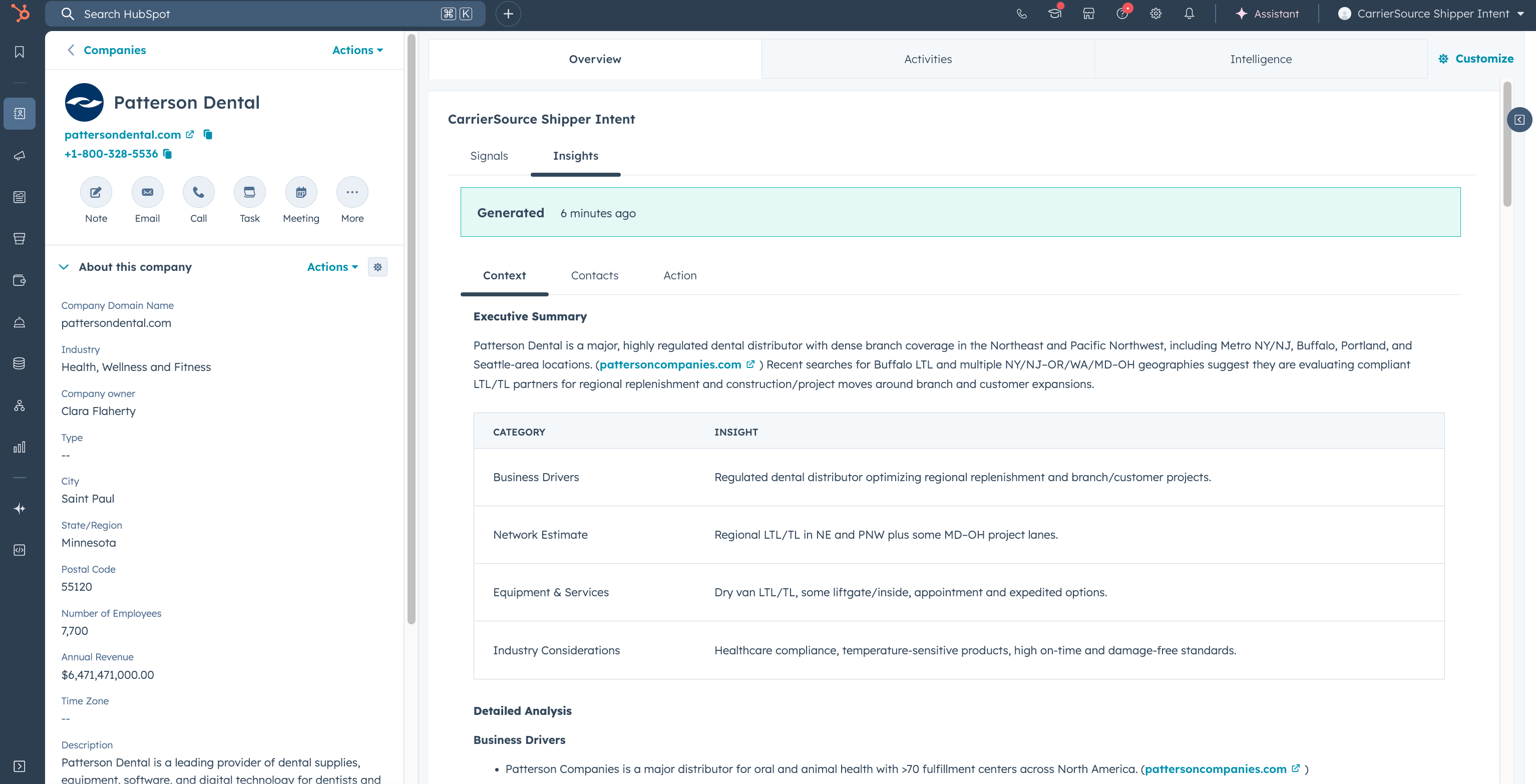 The CarrierSource + HubSpot integration gives your organization real-time visibility into shipper search behavior, right inside your CRM. By syncing CarrierSource Shipper Intent Data directly into HubSpot, you can automatically enrich account records, prioritize outreach based on live intent signals, and trigger smart workflows to accelerate pipeline generation and customer expansion.
