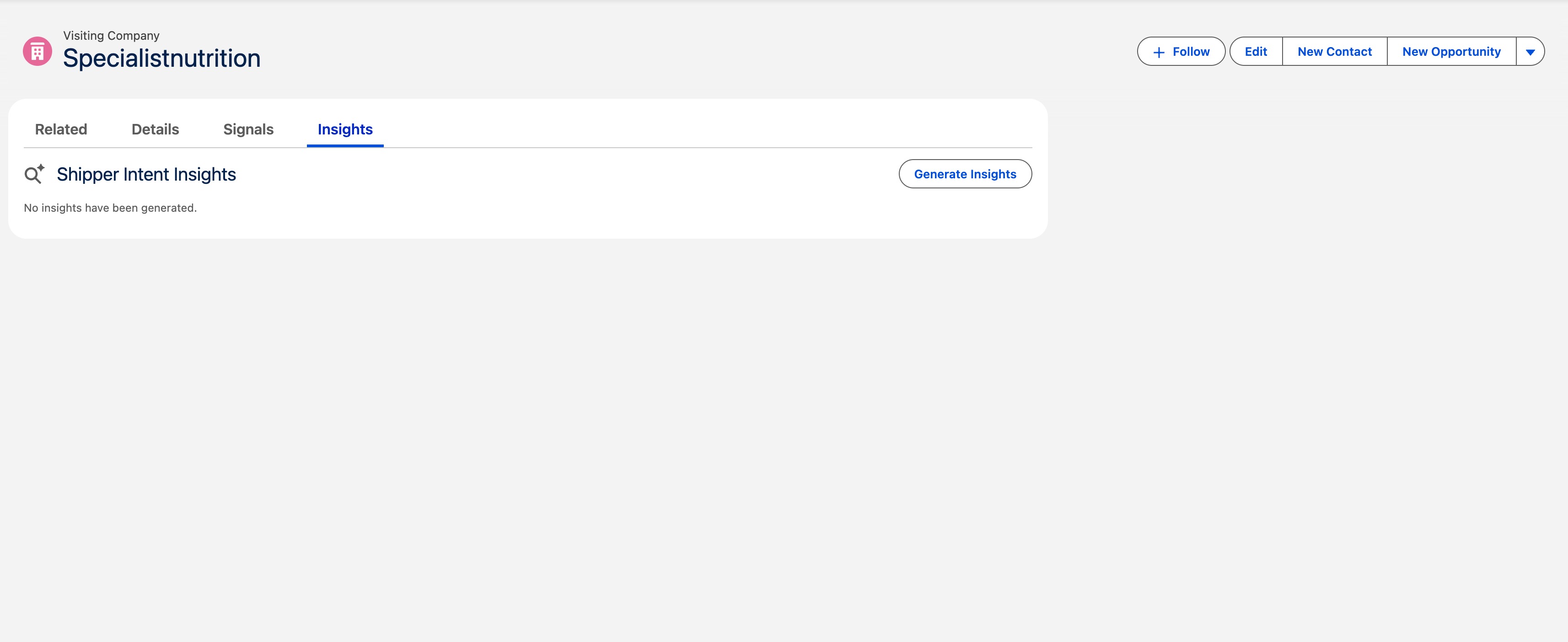 Navigate to a Visiting Company and click Insights to see any previously generated insights and/or generate new ones.