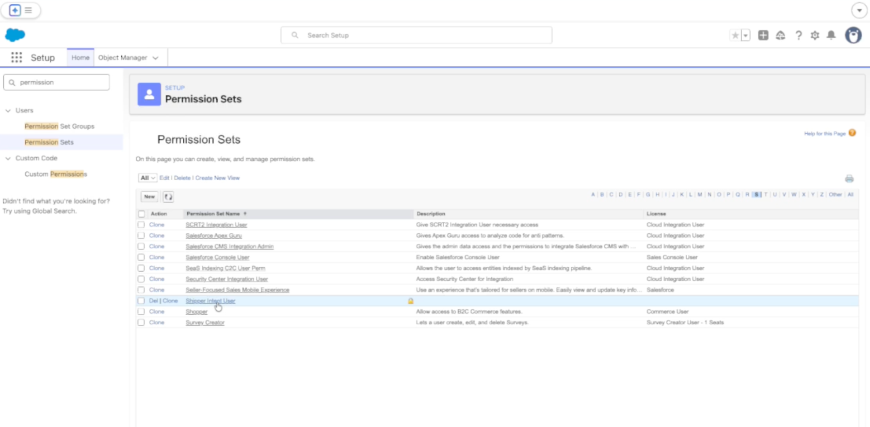 In the left-side navigation search for “Permissions”, then select Permission Sets.