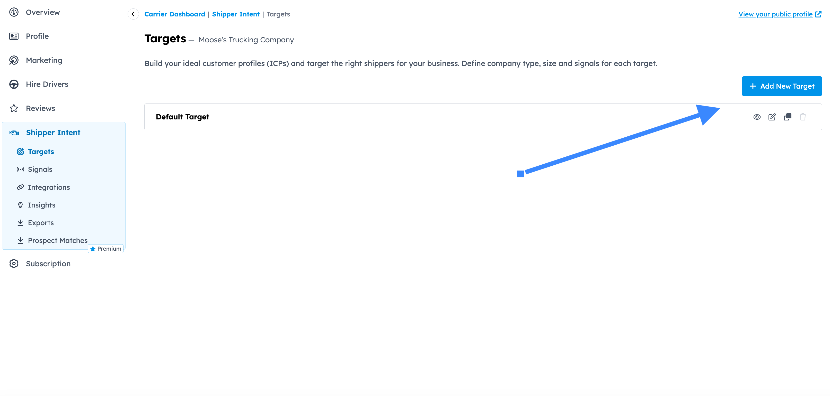 - Targets: Shippers you want to receive intent data for.
