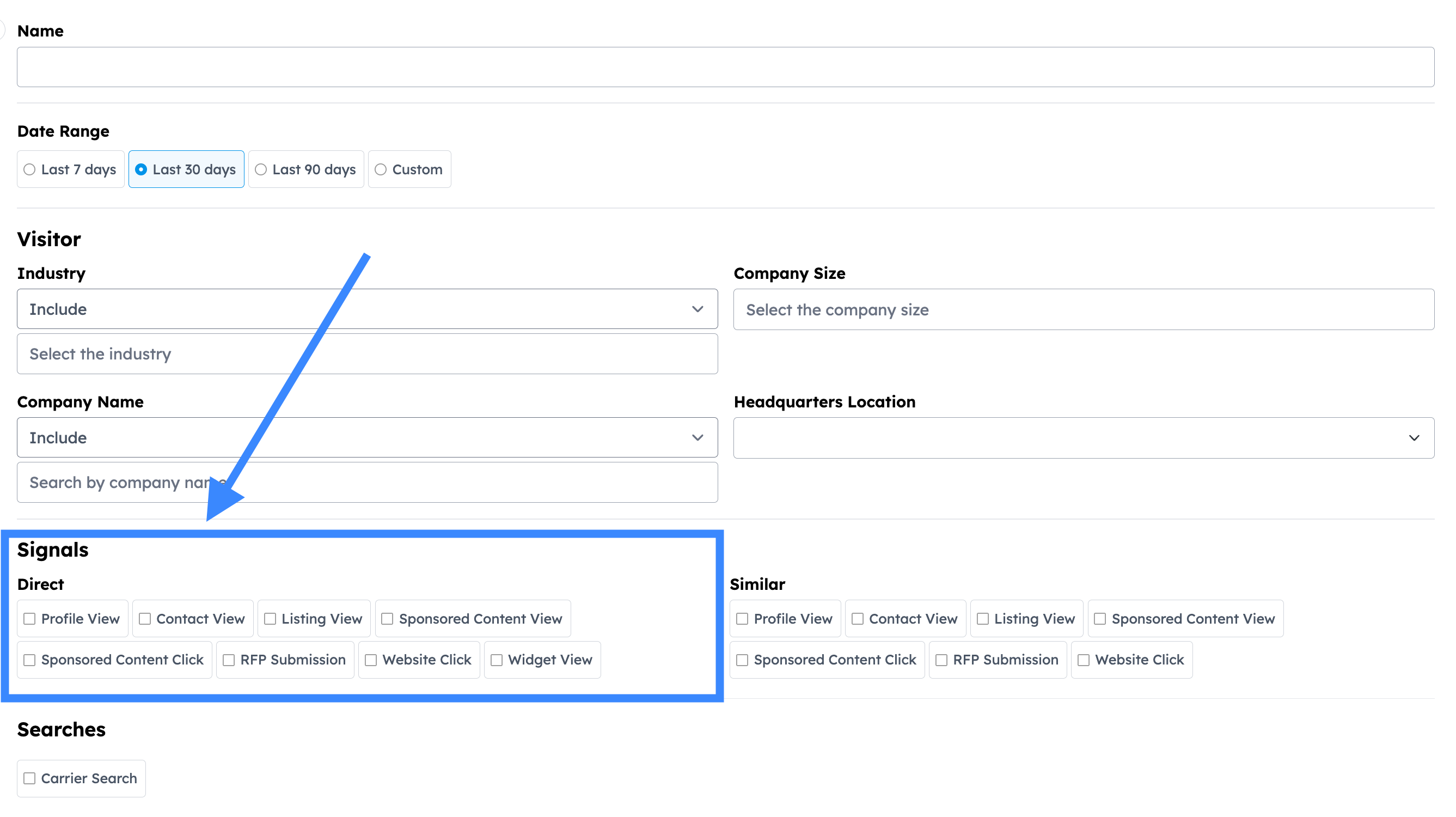 In the Signals section, choose which types of intent you want to track. You can track signals in three key categories:
